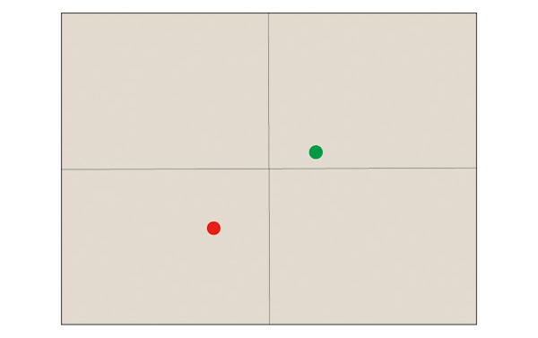 2. 対象にしている2点をファインダ (液晶パネル) の中央部に据えて,撮影。