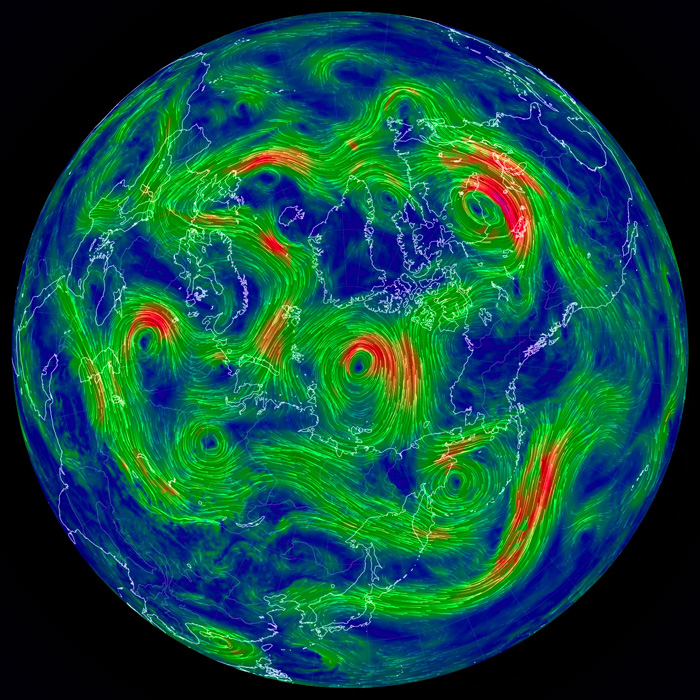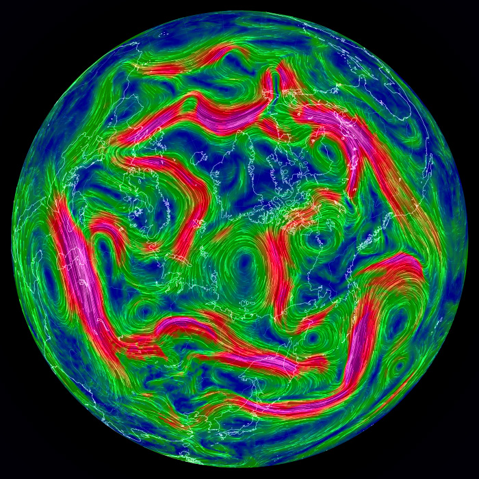右列の天気図は,earth.nullschool.net から。