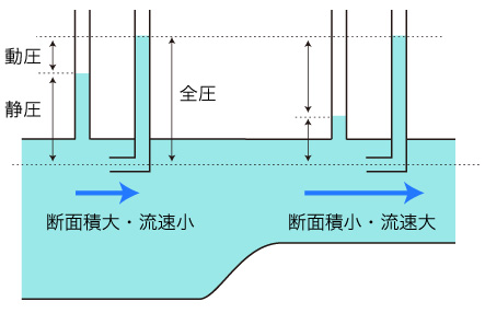 「流れが速くなると(静)圧力が下がり,流れが遅くなると(静)圧力が上がる」