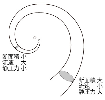 この気圧分布の説明は,流管に対する「ベルヌーイの定理」である:
