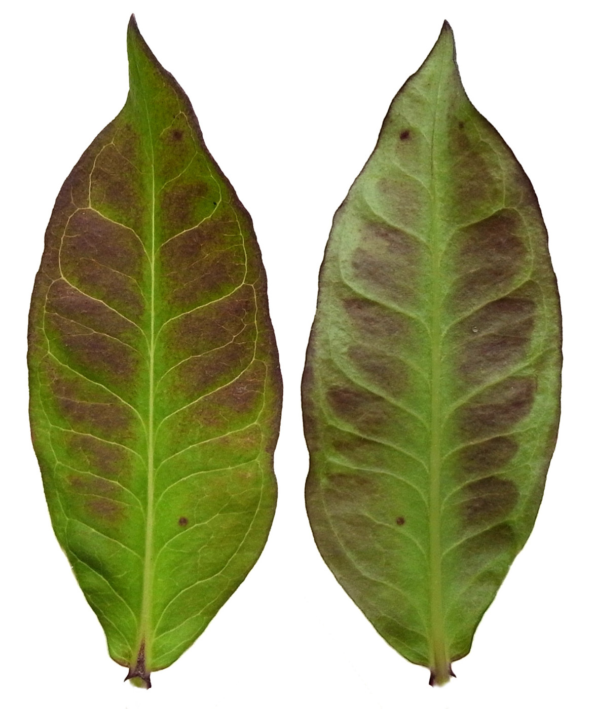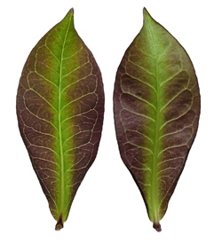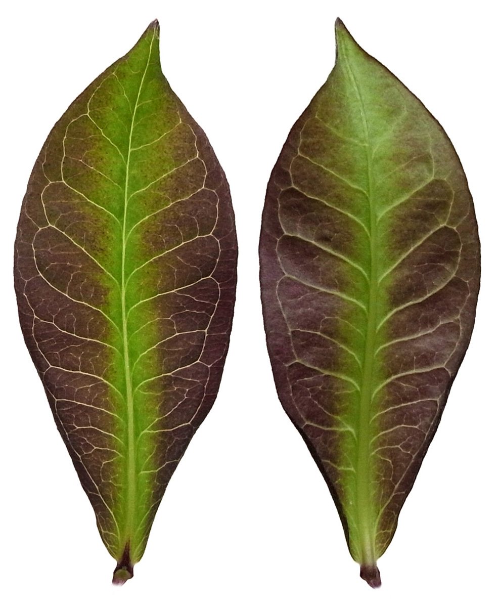 葉の形・大きさの変化 ── 茎の下方から上方へ(画像左から右)