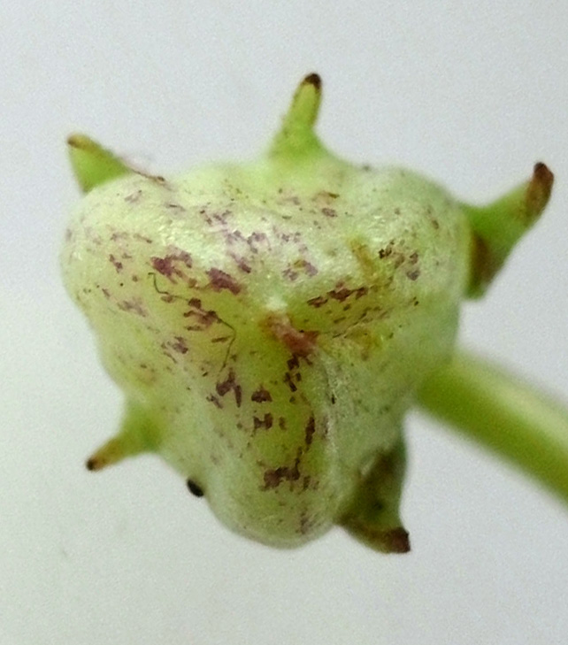 (開放花から出来た実だと,実の先端の柱頭のなごりが長い)
