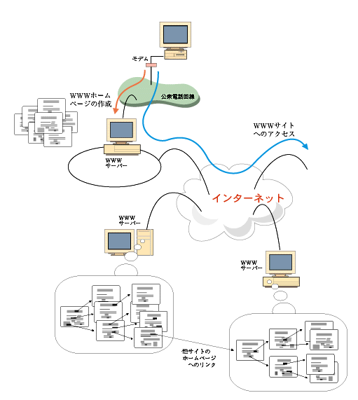 「WWW/ホームページ」の概念図